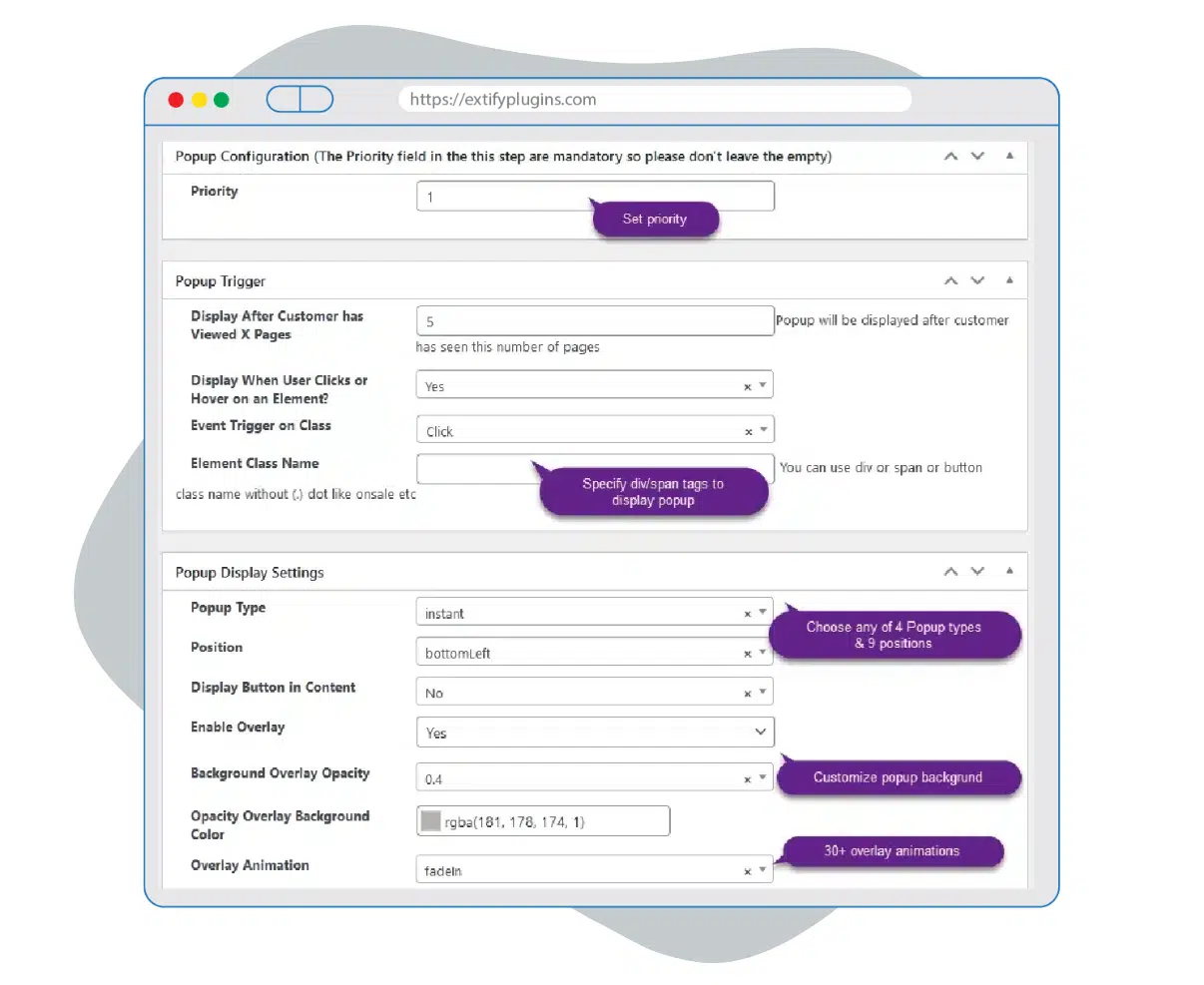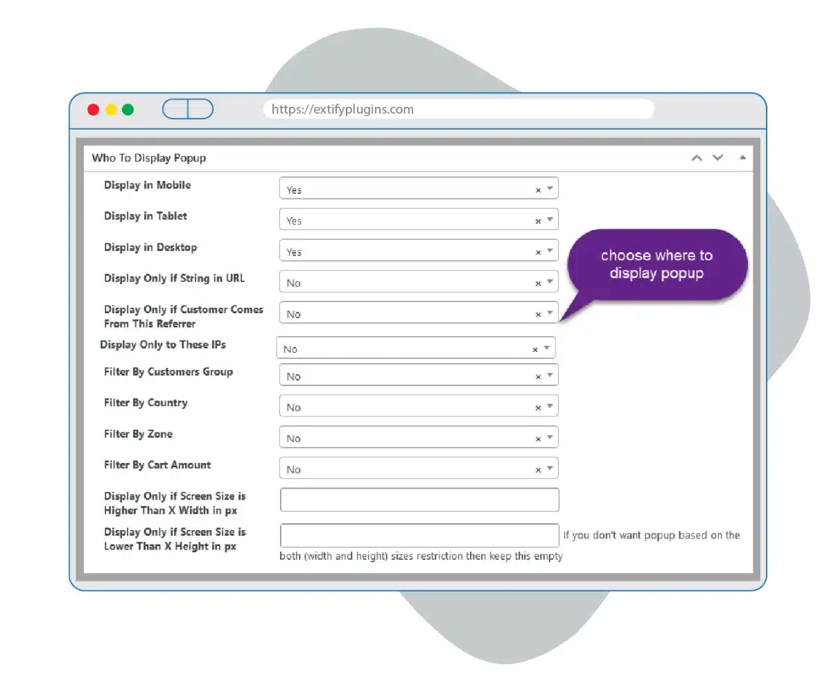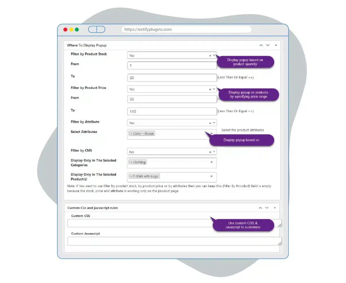 - Advanced Filters: Apply detailed filters to control when and where the popup appears.