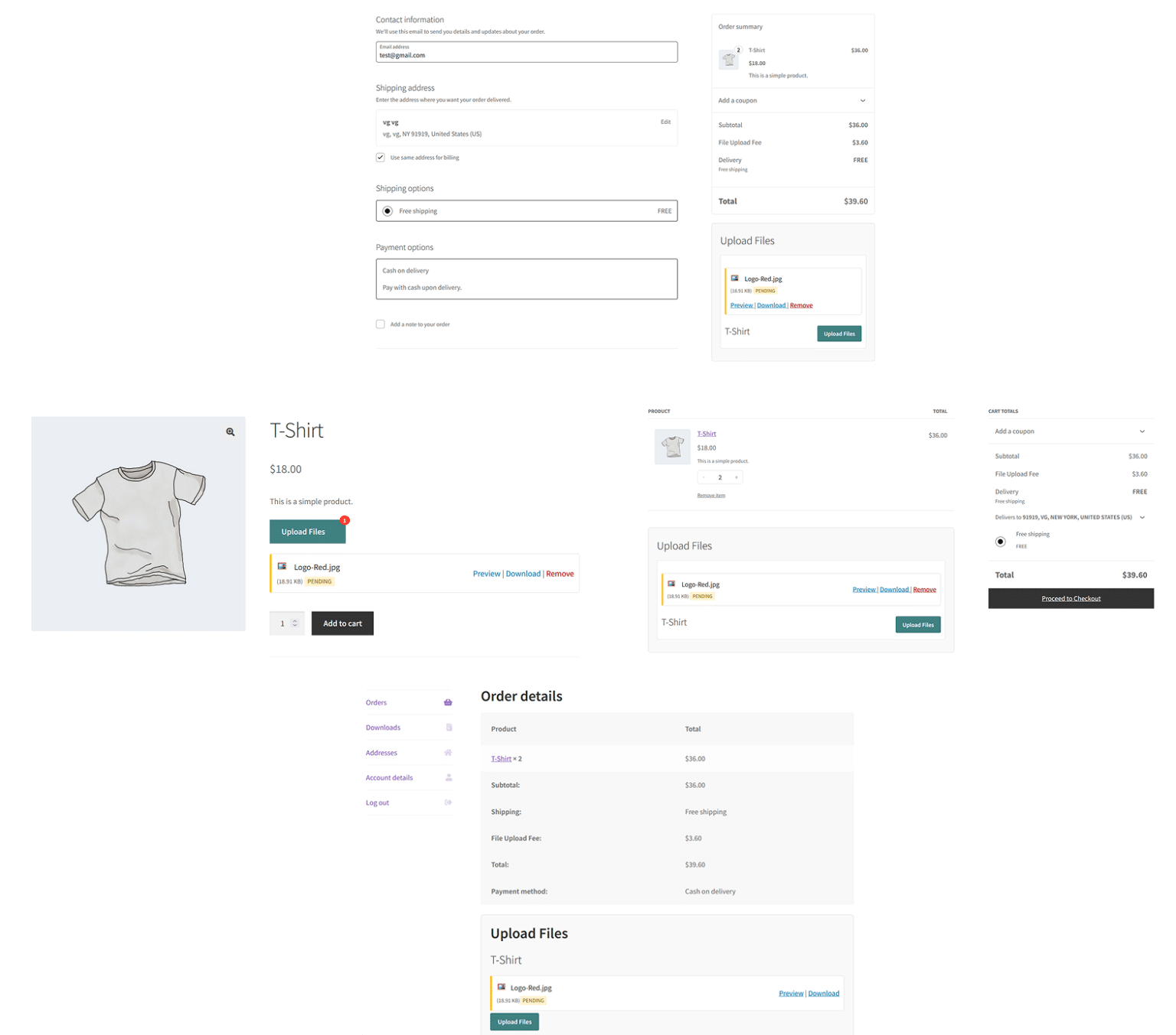 Allow file uploads on Product, Cart, Checkout, and Order pages for a seamless user experience.
