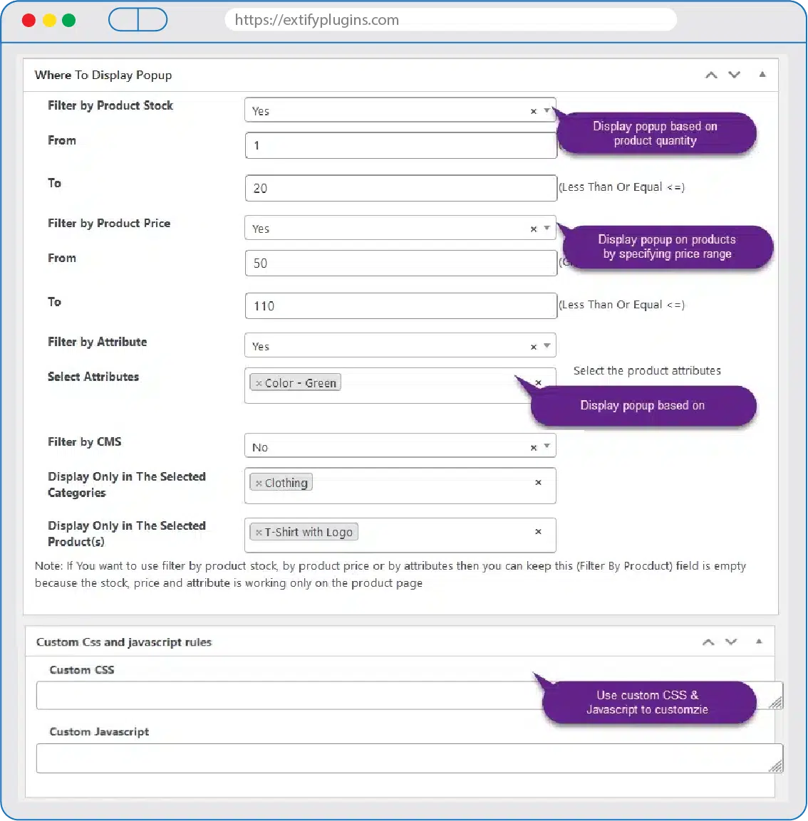Who To Display Popup Settings