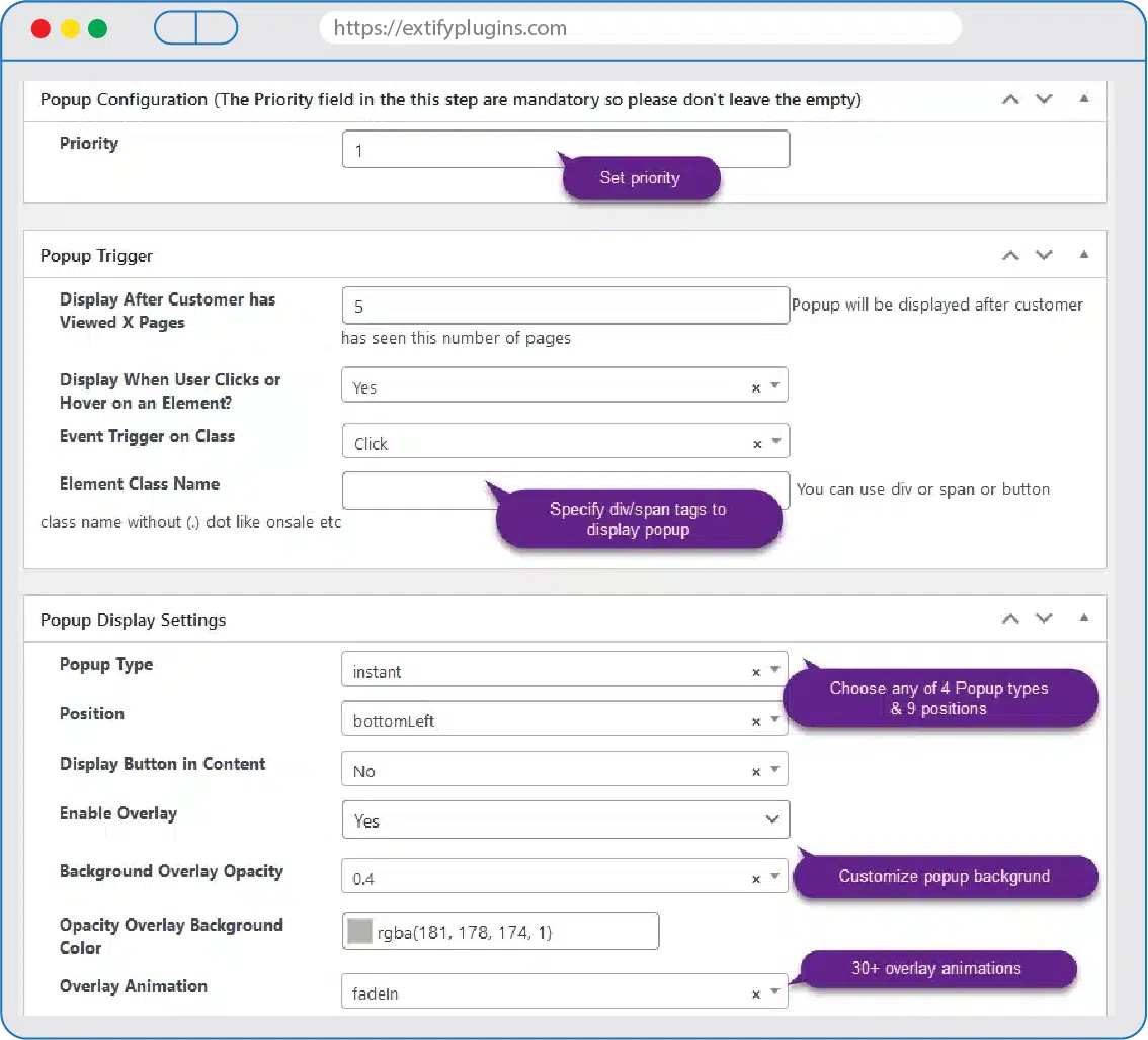- Advanced popup trigger options